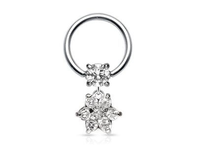 Кольцо из хирургической стали 316L c подвеской в цветка в стразах.
