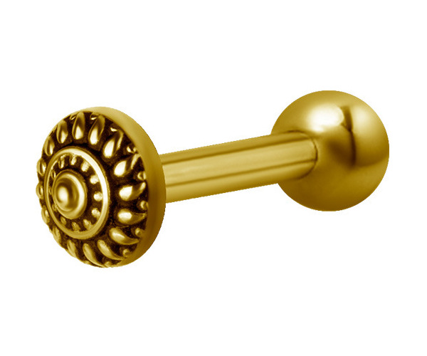 Фигурная микроштанга из хирургической стали 316L с золотым покрытием. Внутренняя резьба.