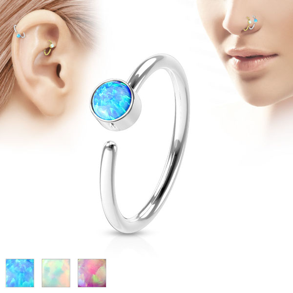 Раздвижное кольцо из хирургической стали 316L. Украшено синтетическим опалом.