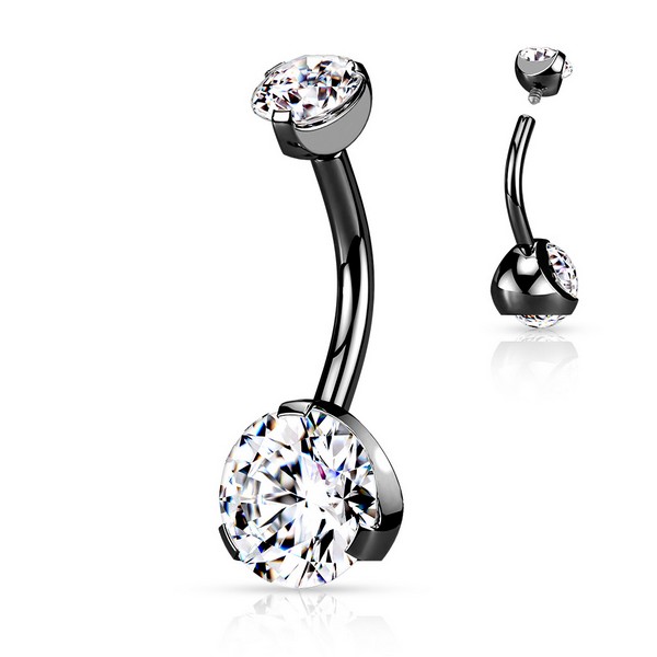Банан их хирургической стали 316L с титановым IP покрытием. Украшен двумя прозрачными кристаллами в лапках, нижний страз диаметром 8 мм.