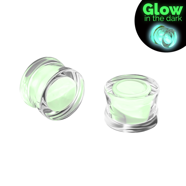 Плаги из прозрачного акрила с порошком люминофором, светятся в темноте.