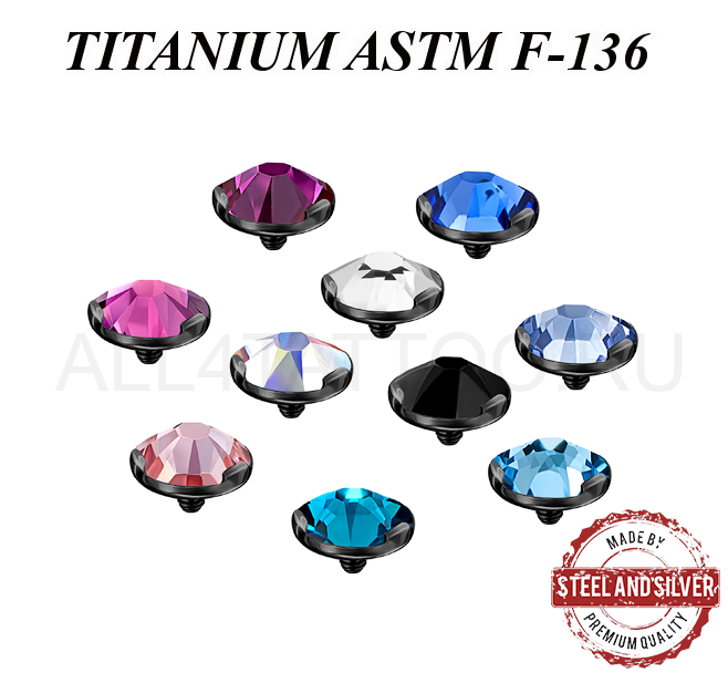 Накрутка из имплантационного титана ASTM F-136 с чёрным PVD покрытием. Украшена кристаллом Swarovski. Резьба накруток 1,2мм подходит к микродермалам и украшениям толщиной 1,6мм с внутренней резьбой. За счет того что кристалл не в обкатке, а в закрепе из трех маленьких лапок - накрутка выглядит значительно ярче.