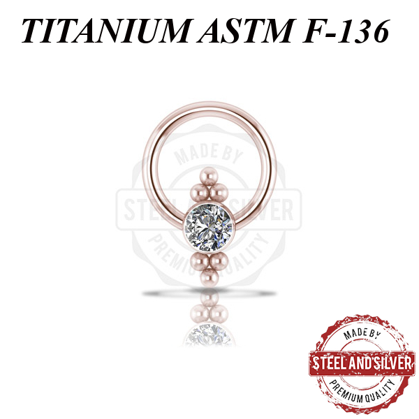 Кольцо из имплантационного титана 6Al-4V-Eli ASTM: F-136 с PVD покрытием розового золота. Украшено кластером с кристаллами Swarovski.