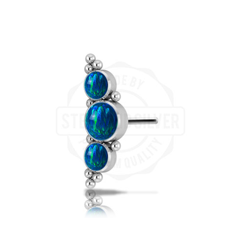 Вставка из имплантационного титана 6Al-4V-Eli ASTM: F-136 для безрезьбового украшения. Украшена лабораторными опалами диаметром 3 и 4мм.