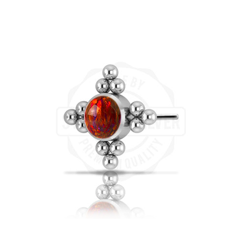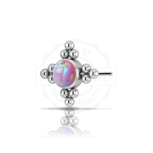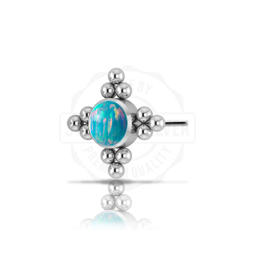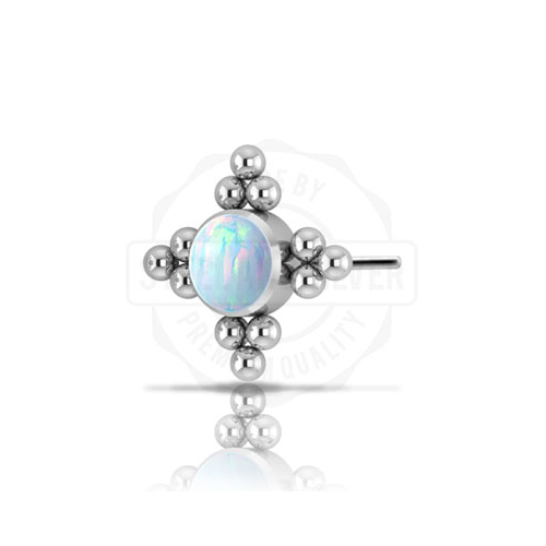 Вставка из имплантационного титана 6Al-4V-Eli ASTM: F-136 для безрезьбовых украшений. Украшена лабораторным опалом диаметром 3мм.