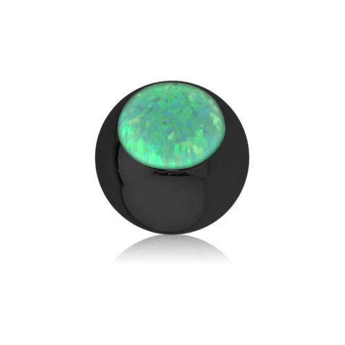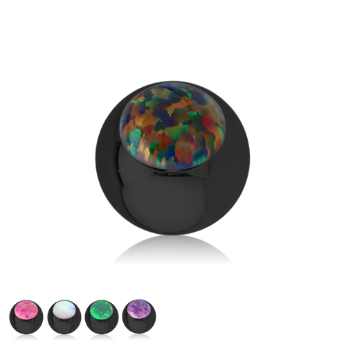 Шарик из хирургической стали 316L с чёрным PVD покрытием украшен лабораторным опалом. Подходит для украшений с внешней резьбой.