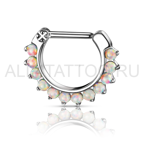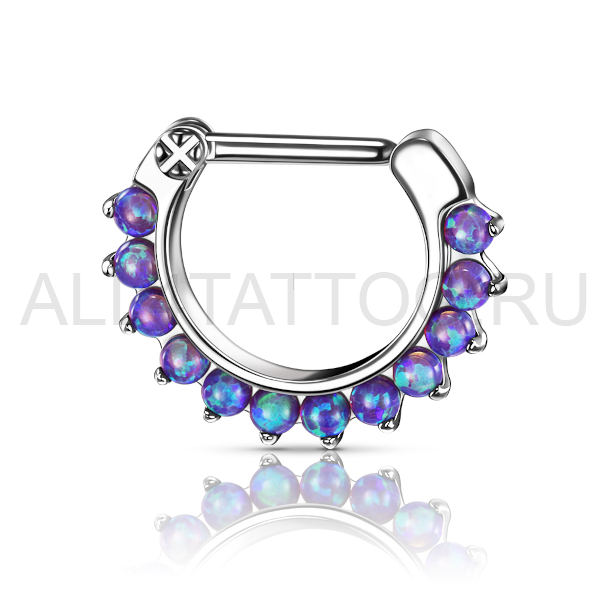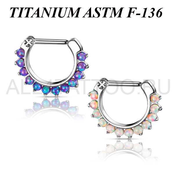 Кликер из имплантационного титана 6Al-4V-Eli ASTM: F-136. Украшен сетом лабораторных опалов.