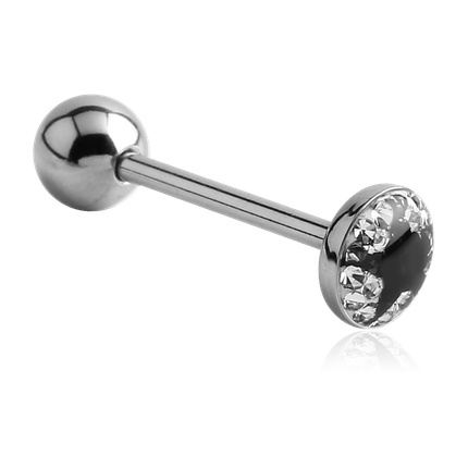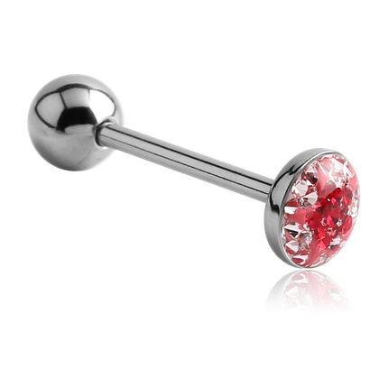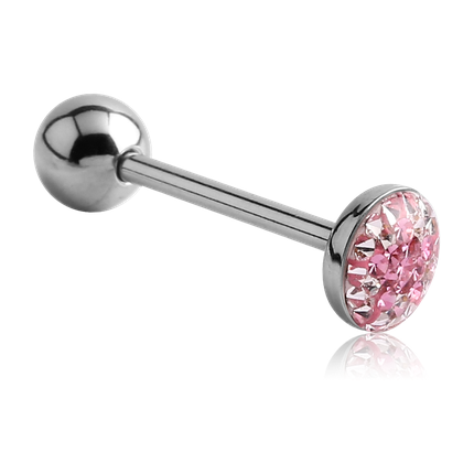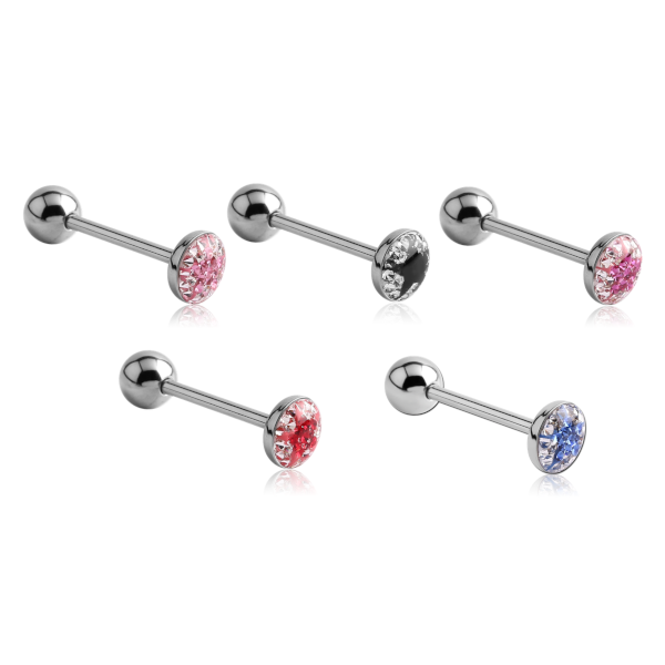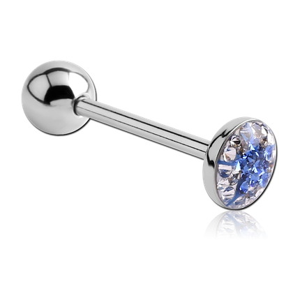 Штанга из хирургической стали 316L украшена диском с множеством прозрачных и цветных страз, выложенных в форме звезды. Диаметр декоративной части: 7,5мм.