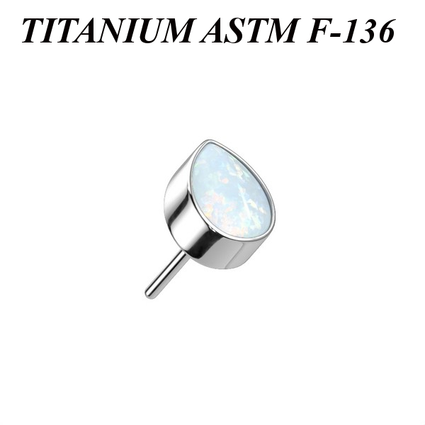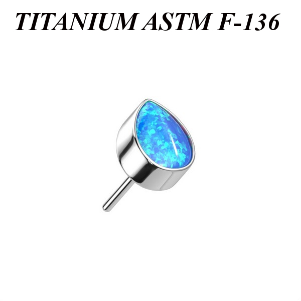 Вставка для безрезьбовых украшений из имплантационного титана 6Al-4V-Eli ASTM: F-136. Украшена лабораторным опалом. Размер декоративной части: 3,5х4,5мм.