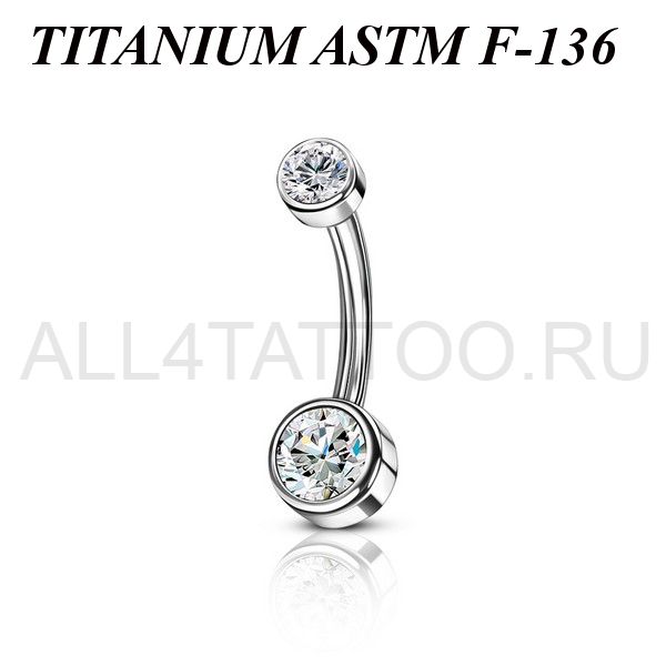 Банан из имплантационного титана 6Al-4V-Eli ASTM: F-136 с внутренней резьбой. Украшен фианитами. Диаметр нижнего шарика - 6мм, верхнего - 4мм.