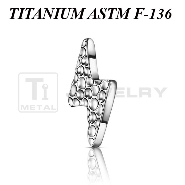 Накрутка из имплантационного титана 6Al-4V-Eli ASTM: F-136 в форме молнии с рельефными лунками.  Размер накрутки: 7,3х4мм. Подходит для украшений с внутренней резьбой толщиной 1 и 1,2 мм.