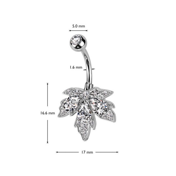 Банан из хирургической стали 316L с декоративной частью из родированной латуни, украшенной прозрачными фианитами. Представлен в двух вариантах: классический стальной и с золотым PVD покрытием.