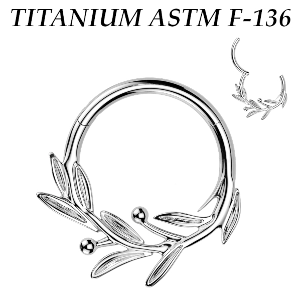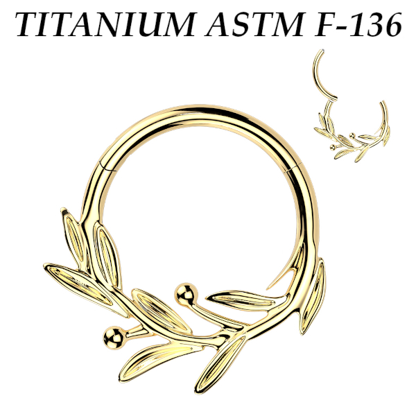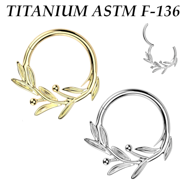 Кликер из имплантационного титана 6Al-4V-Eli ASTM: F-136 в форме ветви оливы. Представлен в двух вариантах: классический стальной и с золотым PVD покрытием.